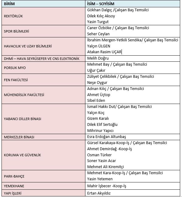2020 YILI SEÇİLEN VE ATANAN ÇALIŞAN TEMSİLCİLERİMİZ :